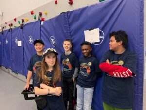 The team placed first in the Core Values competition and second in the Robot Challenge. The team also loved sharing their pins for their lanyards with other schools during the competition.