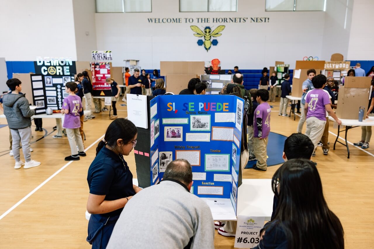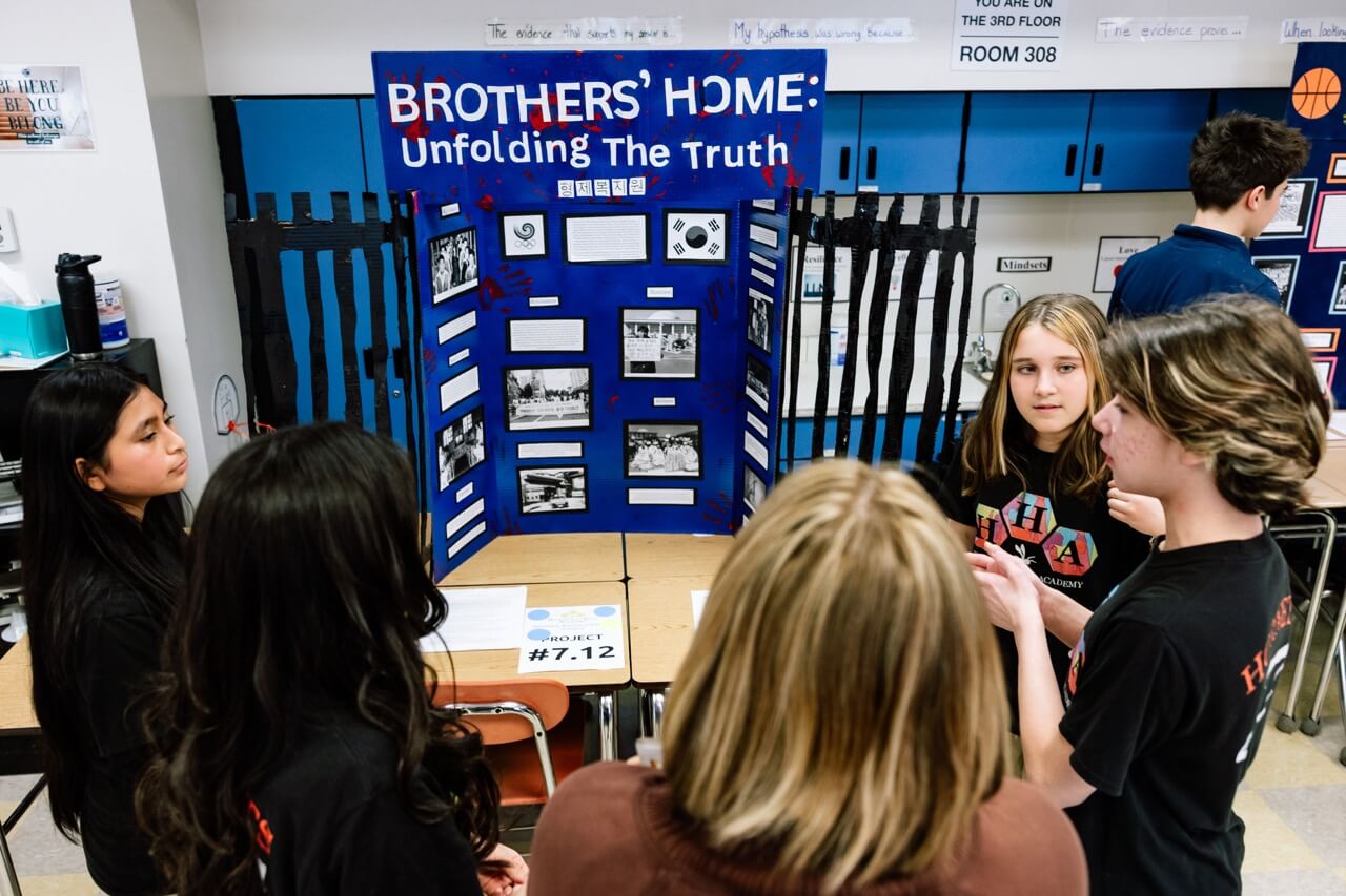 This year’s event, held on January 16, 2026, marked the seventh year for HHA’s competition, with every middle school student participating. Students across 6th, 7th, and 8th grades presented 70 projects, including exhibit boards, documentaries, websites, and live performances, all centered on this year’s theme, “Revolution, Reaction, and Reform in History.”