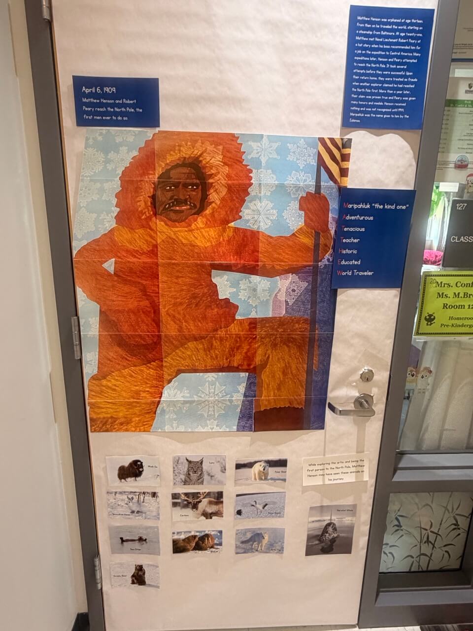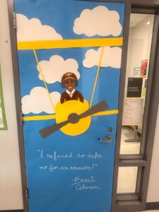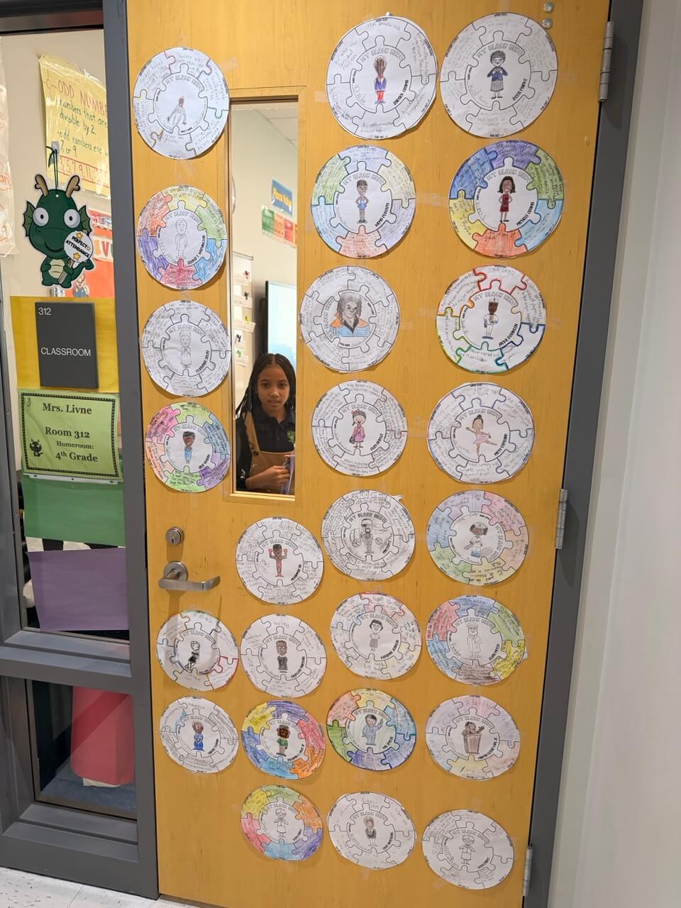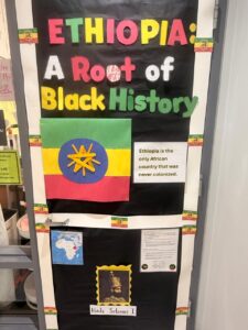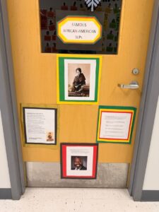 At Govans Elementary School, the Climate and Equity Committee sponsored a Black History Month door decorating contest. Teachers transformed their classroom doors into tributes to influential figures, historical events, and cultural themes, each accompanied by a written explanation, turning hallways into interactive learning spaces.