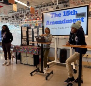 At City Springs Elementary/Middle School, students participated in individual, class-based projects exploring Black history and contributions across disciplines. For example, Ms. Hughes’ students explored the achievements of Black scientists through in-depth book reports, highlighting innovators whose work continues to influence modern society. These projects encouraged students to think critically about representation in STEM fields and recognize the impact of Black excellence in science. In addition, the school’s morning broadcasts featured students reading works by Black poets, bringing powerful voices and perspectives into the daily start of the school day.