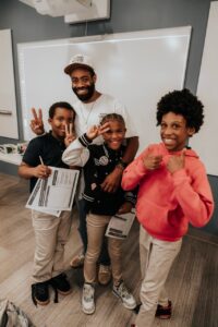 Mr. Hardy used his first COVID-19 stimulus check to create UPM; his second check paid for a nonprofit coach and coursework. “When I graduated, I committed to saving my younger self and taking my life experiences to help inspire, motivate, and provide opportunity for the next generation,” he explains. He began teaching 1st grade at Furman Templeton and met a boy who reminded him of his younger self. As Mr. Hardy began to support him in the way that others had supported his younger self, word spread. “One student turned to15 students, which inspired me to see myself outside the classroom,” he said.
